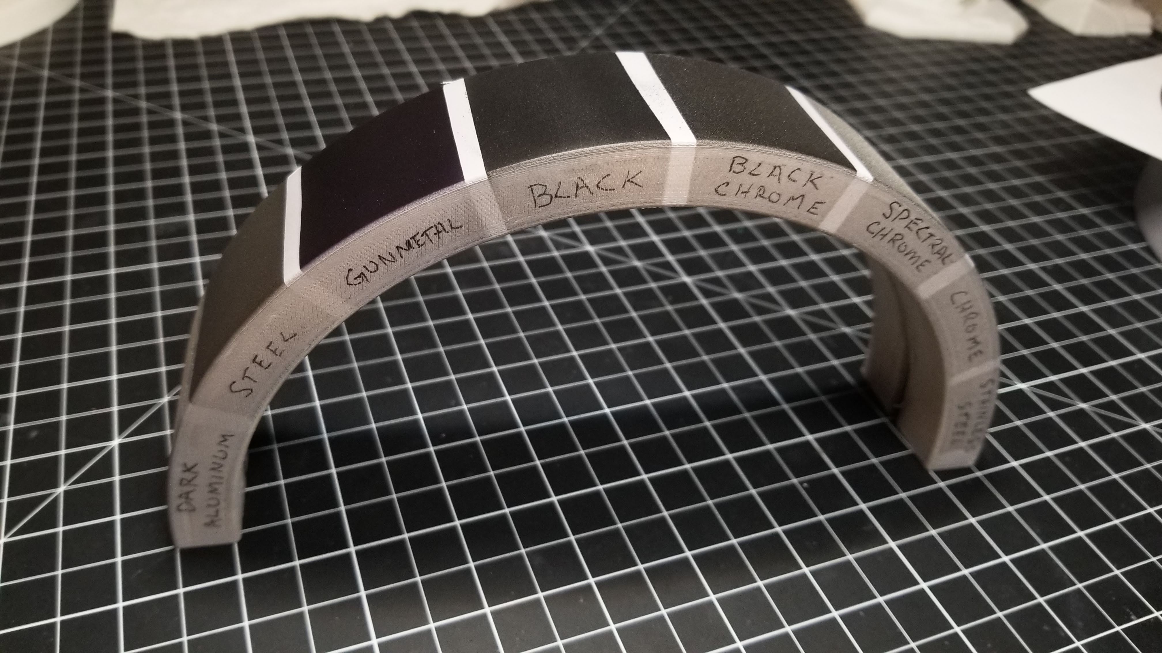 Since we’re at the point of painting, I wanted to test out some metallic paint colors, so I made a paint swatch from the unusable half of outer ring to figure out what colors I want to use..
